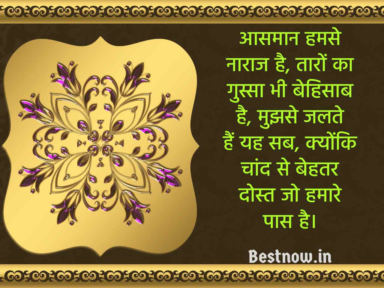 आसमान हमसे नाराज है, तारों का गुस्सा भी बेहिसाब है, मुझसे जलते हैं यह सब, क्योंकि चांद से बेहतर दोस्त जो हमारे पास है।