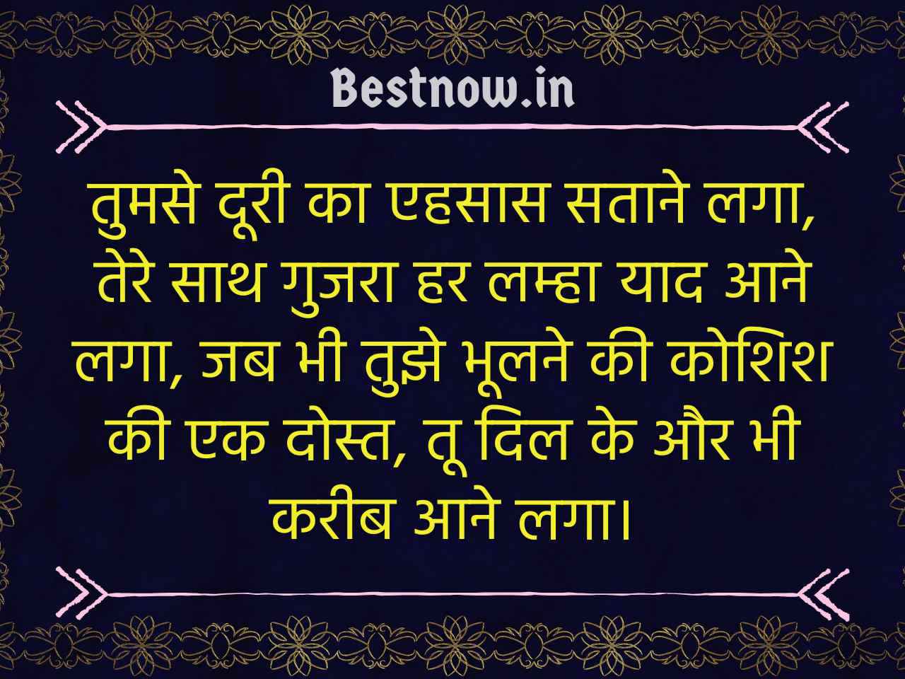 तुमसे दूरी का एहसास सताने लगा, तेरे साथ गुजरा हर लम्हा याद आने लगा, जब भी तुझे भूलने की कोशिश की एक दोस्त, तू दिल के और भी करीब आने लगा।