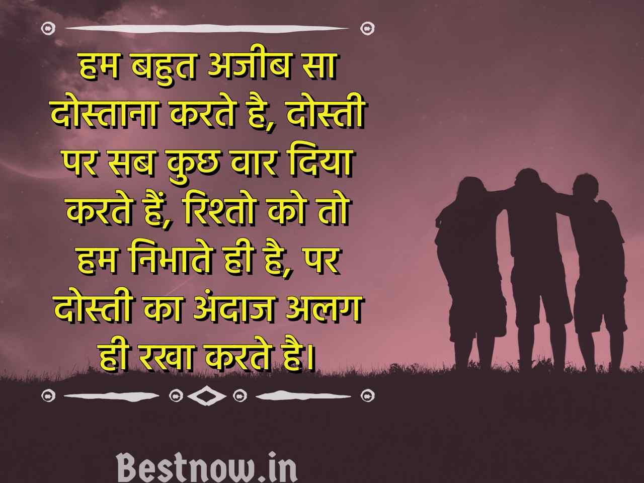 हम बहुत अजीब सा दोस्ताना करते है, दोस्ती पर सब कुछ वार दिया करते हैं, रिश्तो को तो हम निभाते ही है, पर दोस्ती का अंदाज अलग ही रखा करते है।