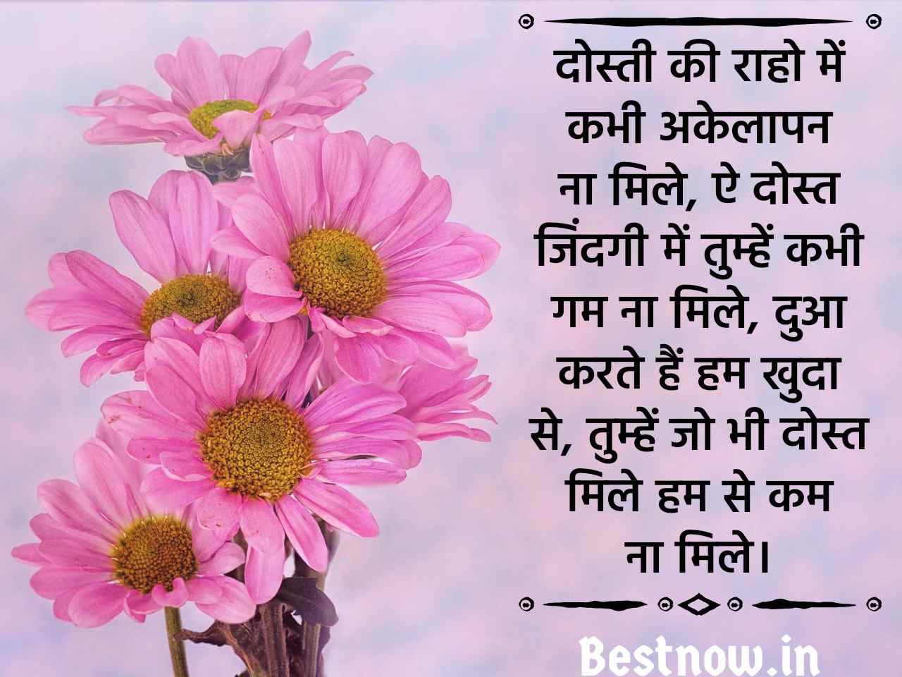 दोस्ती की रहो में कभी अकेलापन ना मिले, ऐ दोस्त जिंदगी में तुम्हें कभी गम ना मिले, दुआ करते हैं हम खुदा से, तुम्हें जो भी दोस्त मिले हम से कम ना मिले।