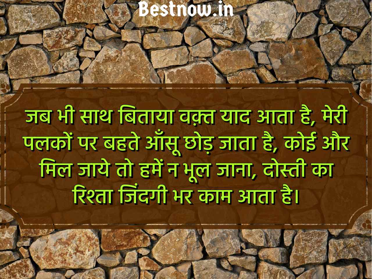 जब भी साथ बिताया वक़्त याद आता है, मेरी पलकों पर बहते आँसू छोड़ जाता है, कोई और मिल जाये तो हमें न भूल जाना, दोस्ती का रिश्ता जिंदगी भर काम आता है।