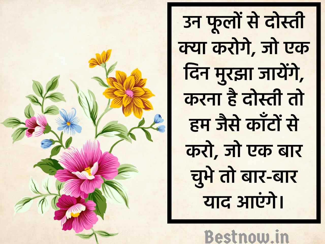 उन फूलों से दोस्ती क्या करोगे, जो एक दिन मुरझा जायेंगे, करना है दोस्ती तो हम जैसे काँटों से करो, जो एक बार चुभे तो बार-बार याद आएंगे।