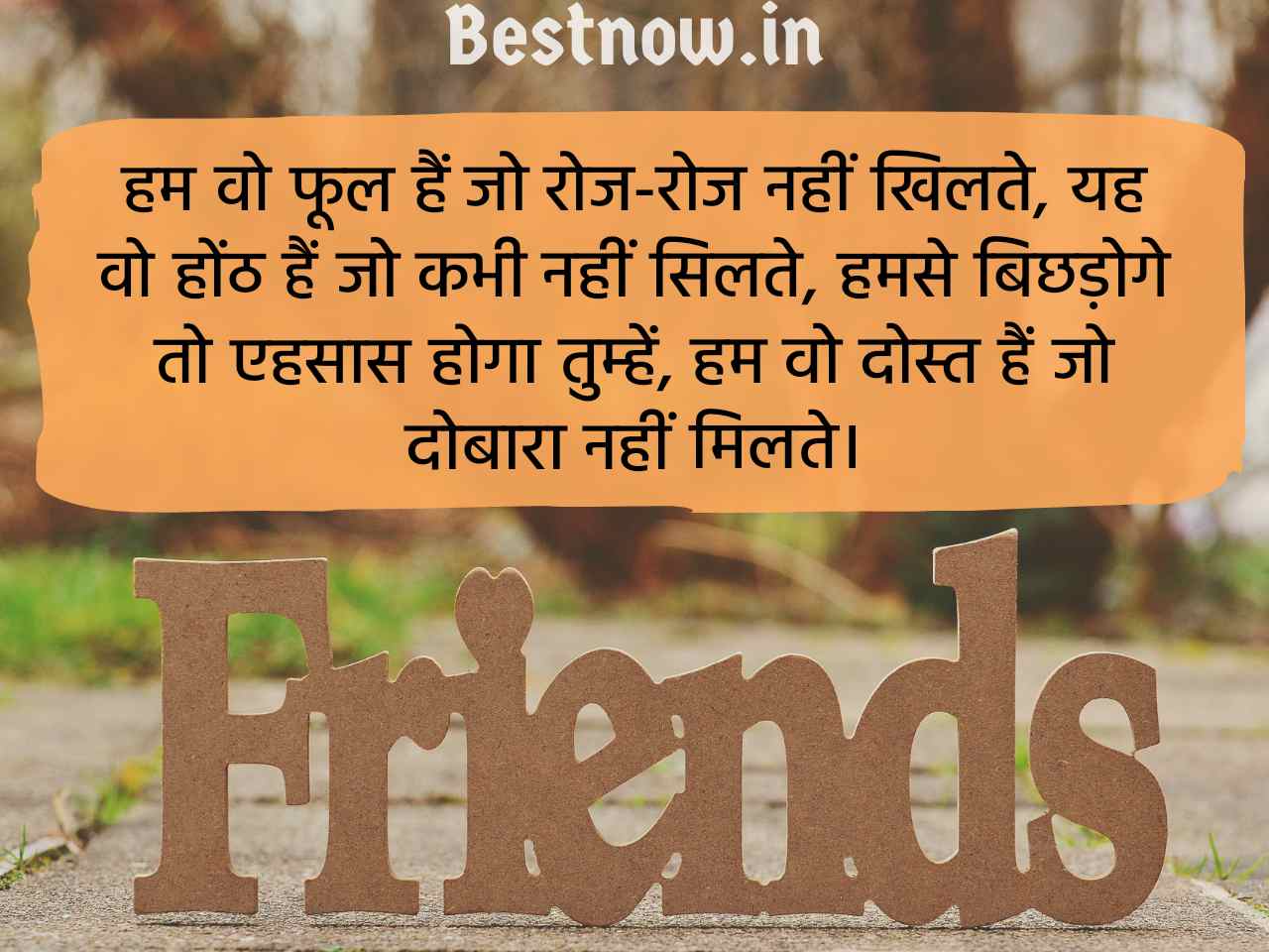 हम वो फूल हैं जो रोज-रोज नहीं खिलते, यह वो होंठ हैं जो कभी नहीं सिलते, हमसे बिछड़ोगे तो एहसास होगा तुम्हें, हम वो दोस्त हैं जो दोबारा नहीं मिलते।