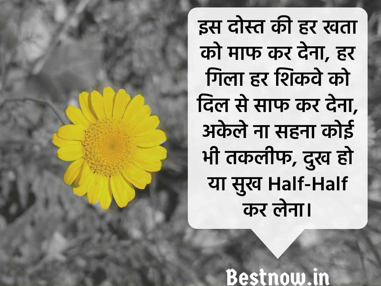 इस दोस्त की हर खता को माफ कर देना, हर गिला हर शिकवे को दिल से साफ कर देना, अकेले ना सहना कोई भी तकलीफ, दुख हो या सुख Half-Half कर लेना।