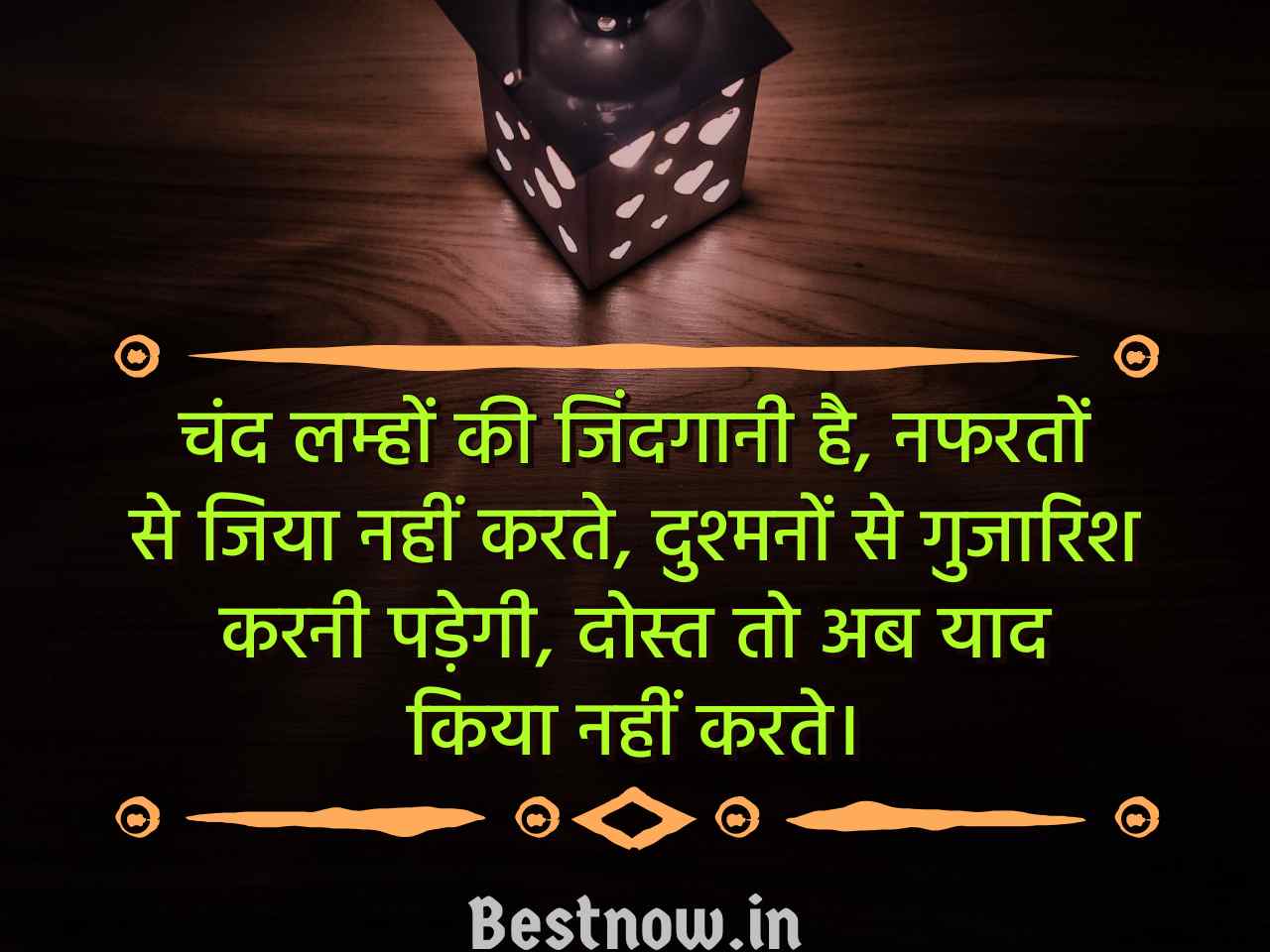 चंद लम्हों की जिंदगानी है, नफरतों से जिया नहीं करते, दुश्मनों से गुजारिश करनी पड़ेगी, दोस्त तो अब याद किया नहीं करते।