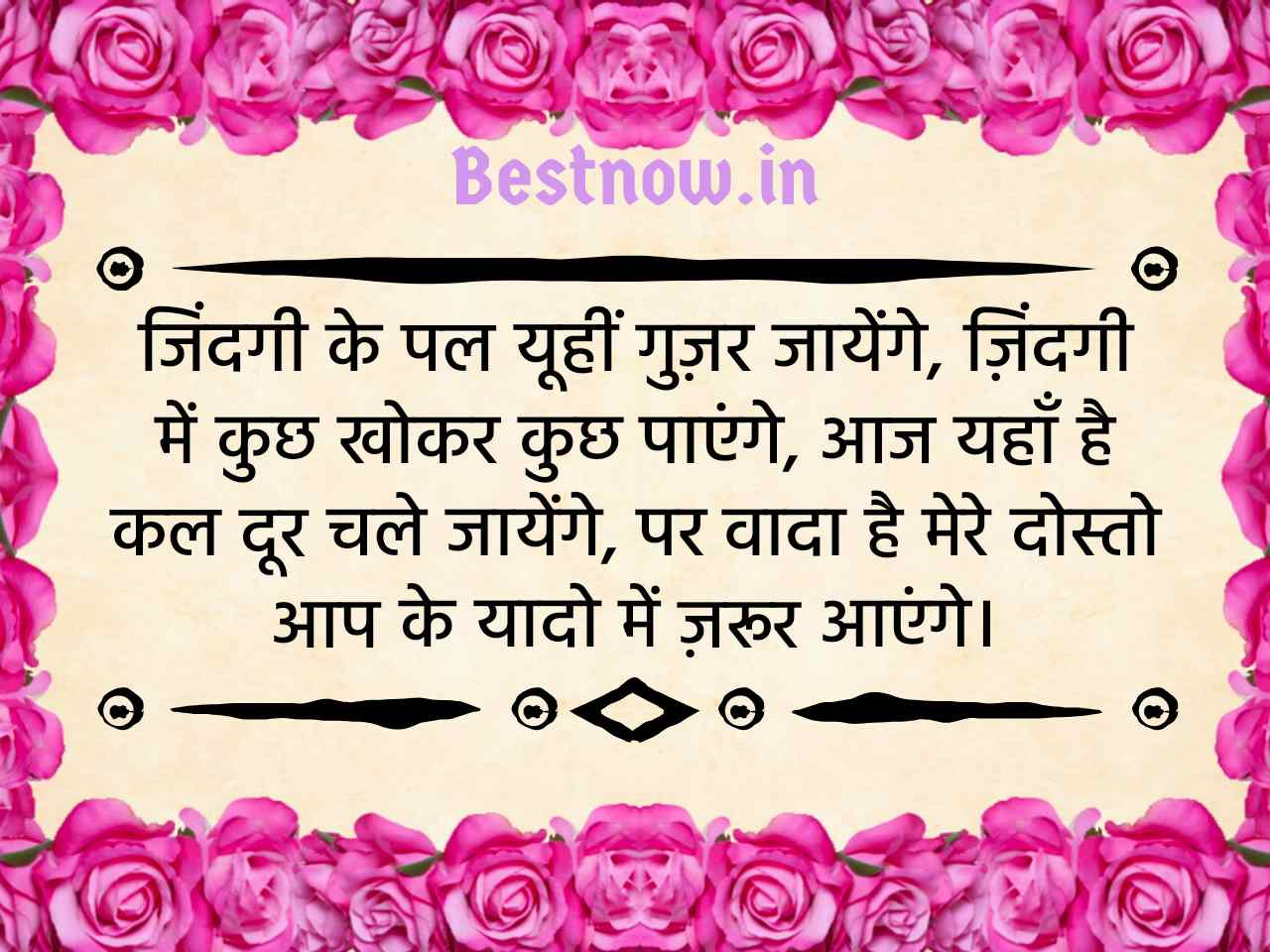 जिंदगी के पल युही गुज़र जायेंगे, ज़िंदगी में कुछ खोकर कुछ पाएंगे, आज यहाँ है कल दूर चले जायेंगे, पर वादा है मेरे दोस्तो आप के यादो में ज़रूर आएंगे।