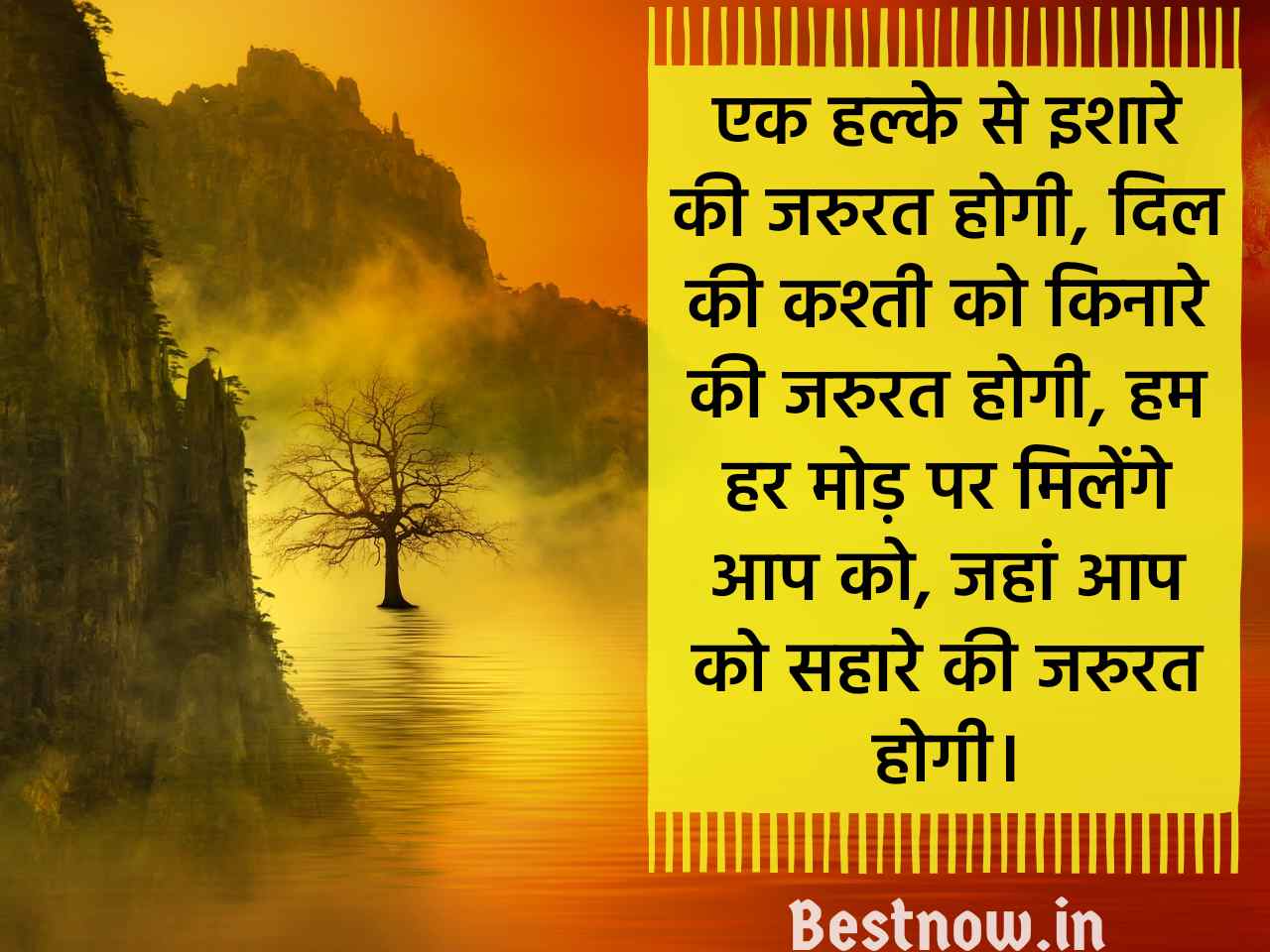 एक हल्के से इशारे की जरुरत होगी, दिल की कश्ती को किनारे की जरुरत होगी, हम हर मोड़ पर मिलेंगे आप को, जहां आप को सहारे की जरुरत होगी।