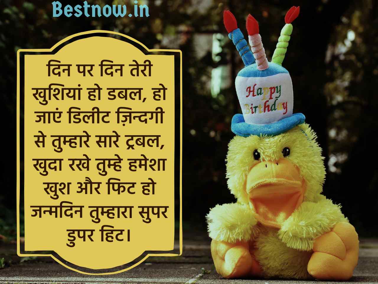 दिन पर दिन तेरी खुशियां हो डबल, हो जाएं डिलीट ज़िन्दगी से तुम्हारे सरे ट्रबल, खुदा रखे तुम्हे हमेशा खुश और फिट हो जन्मदिन तुम्हारा सुपर डुपर हिट।