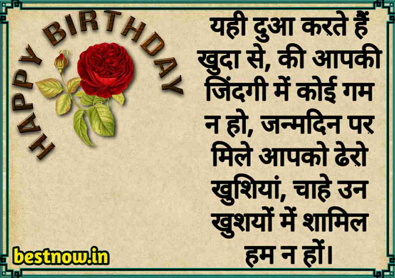 हमारी तो दुआ है, कोई गिला नही है, वो गुलाब जो आज तक खिला नही है, आज के दिन आपको वो सब कुछ मिले, जो आज तक कभी किसी को मिला नही है।