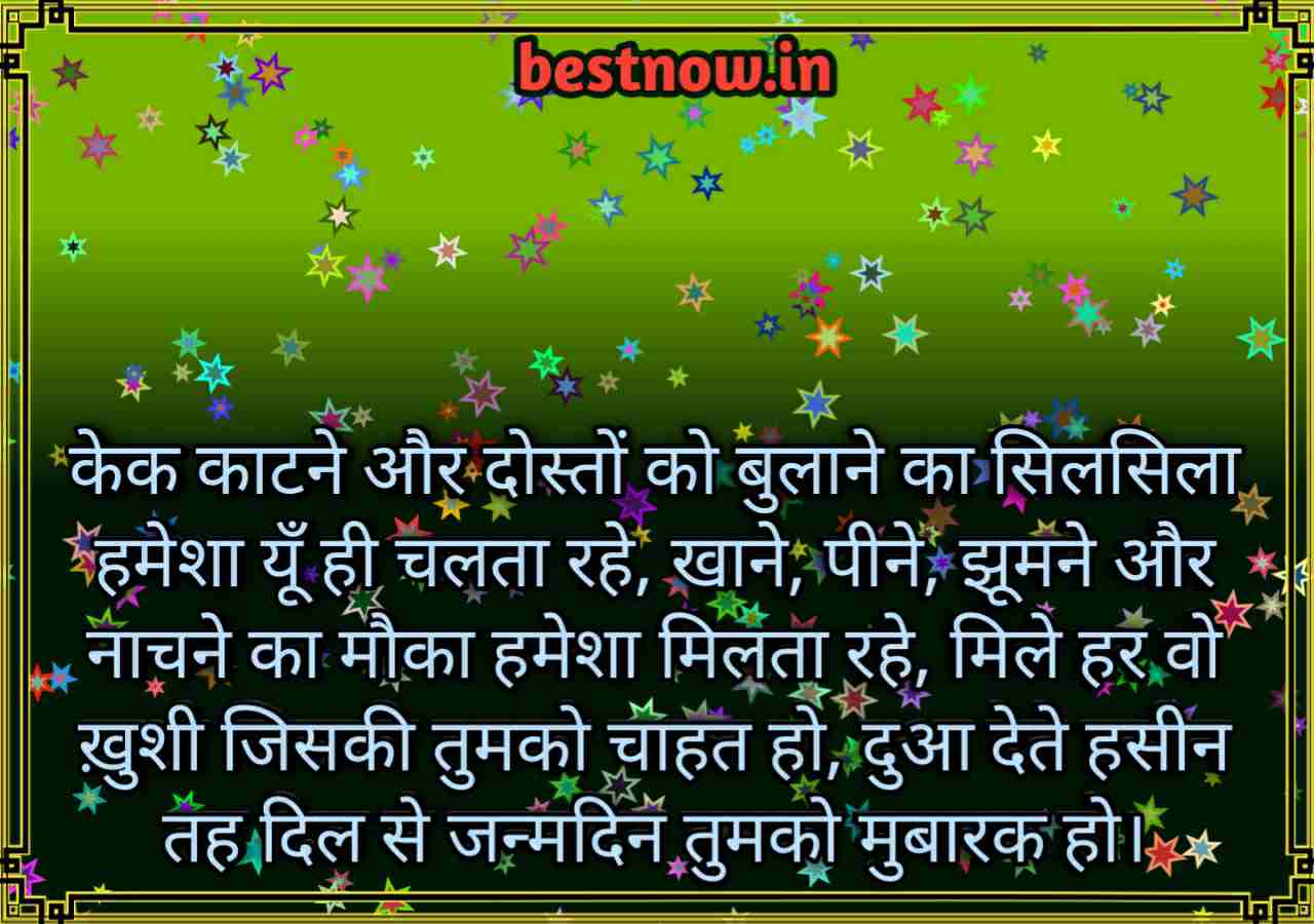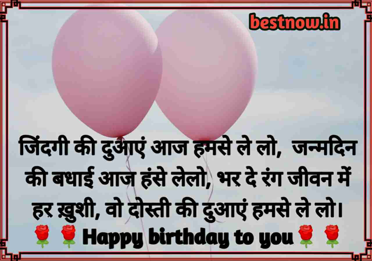 जिंदगी की दुआएं आज हमसे ले लो, जन्मदिन की बधाई आज हंसे लेलो, भर दे रंग जीवन में हर ख़ुशी, वो दोस्ती की दुआएं हमसे ले लो।