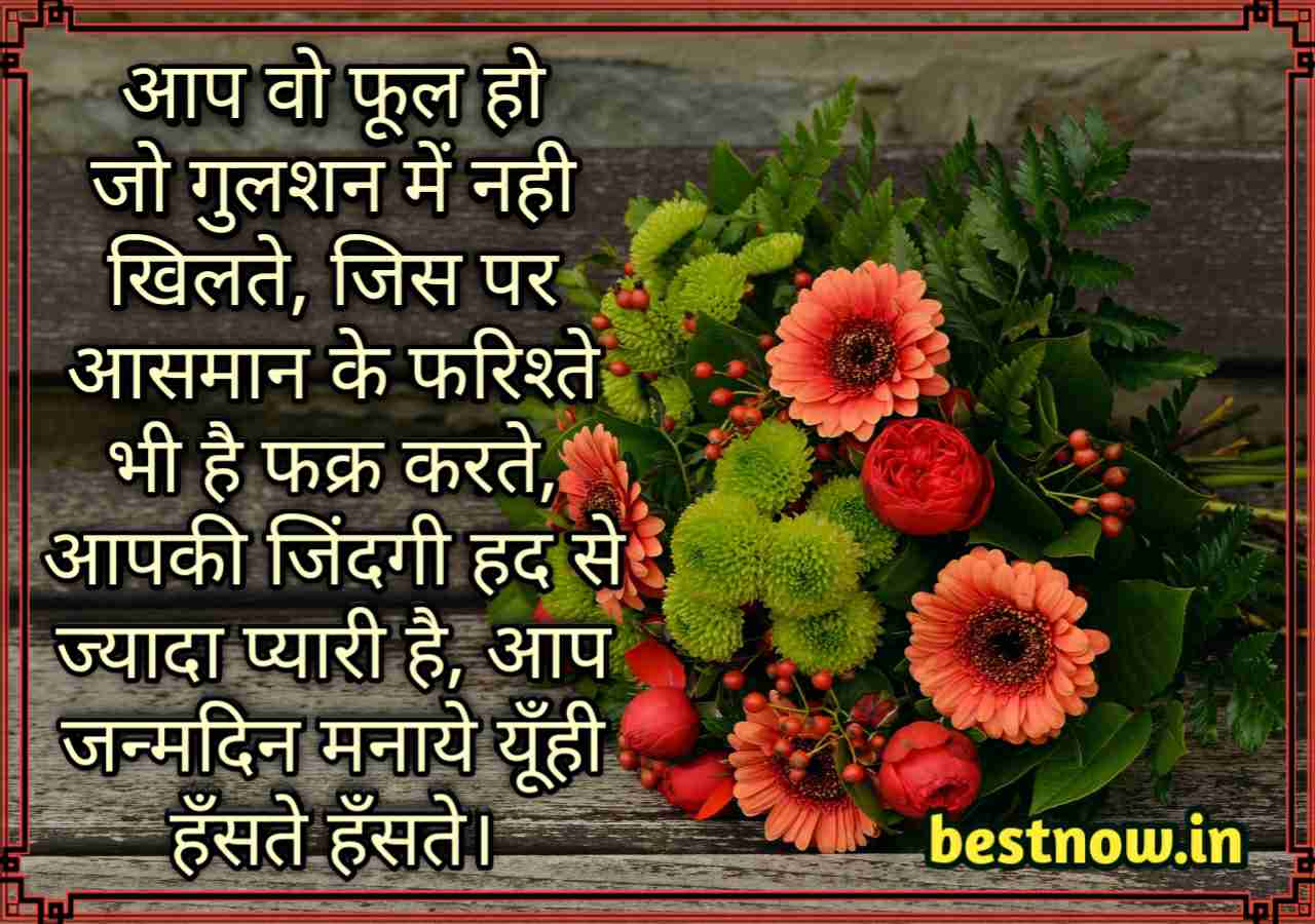 आप वो फूल हो जो गुलशन में नही खिलते, जिस पर आसमान के फरिश्ते भी है फक्र करते, आपकी जिंदगी हद से ज्यादा प्यारी है, आप जन्मदिन मनाये यूँही हँसते हँसते।