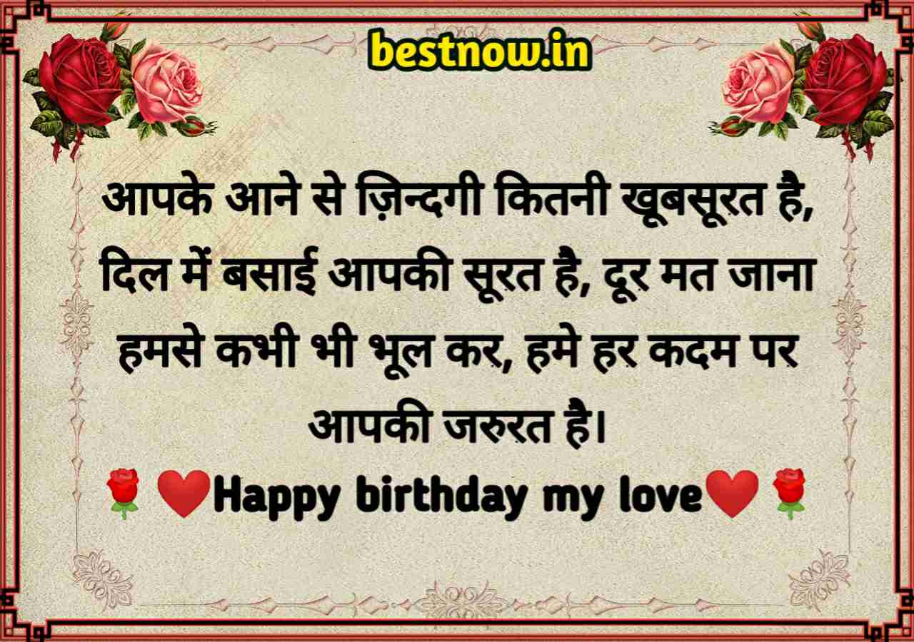 आपके आने से ज़िन्दगी कितनी खूबसूरत है, दिल में बसाई आपकी सूरत है, दूर मत जाना हमसे कभी भी भूल कर, हमे हर कदम पर आपकी जरुरत है।