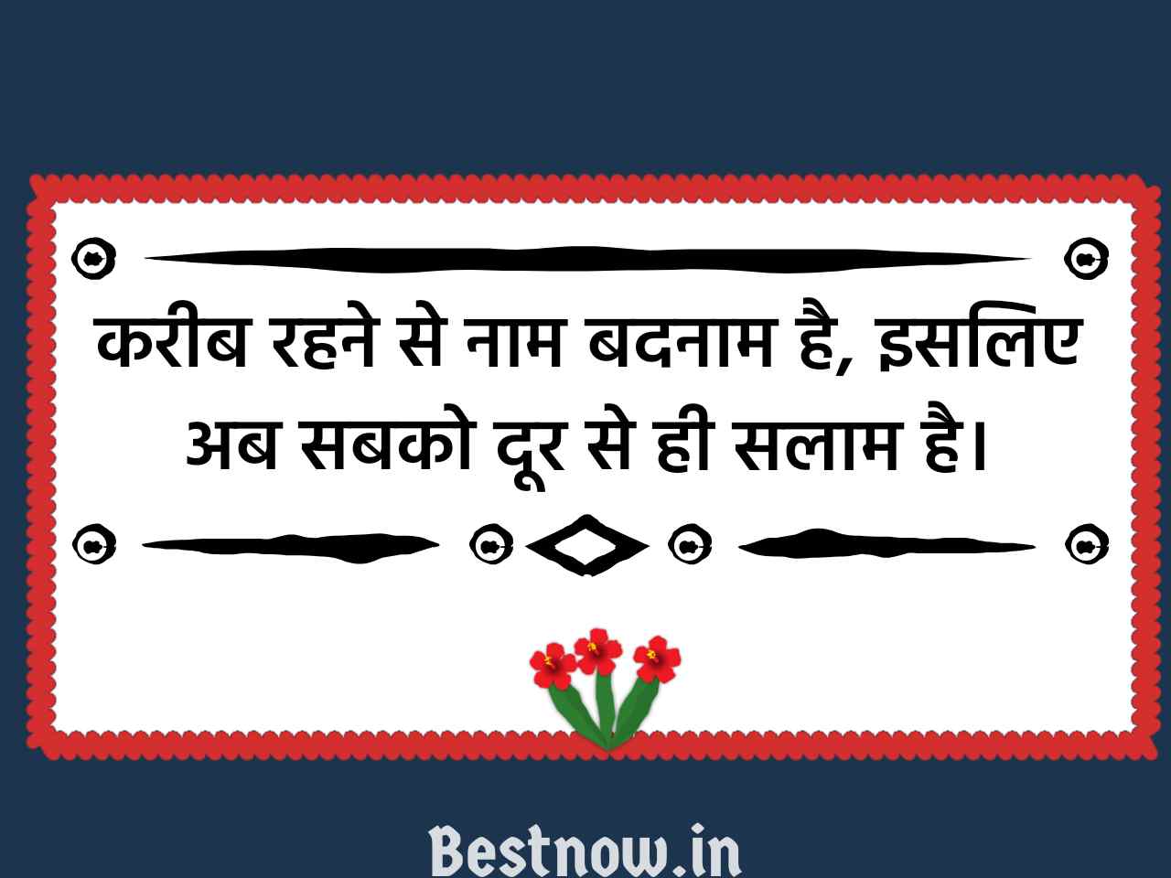 करीब रहने से नाम बदनाम है, इसलिए अब सबको दूर से ही सलाम है।