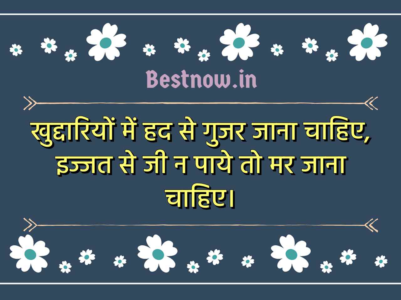 खुद्दारियों में हद से गुजर जाना चाहिए, इज्जत से जी न पाये तो मर जाना चाहिए।
