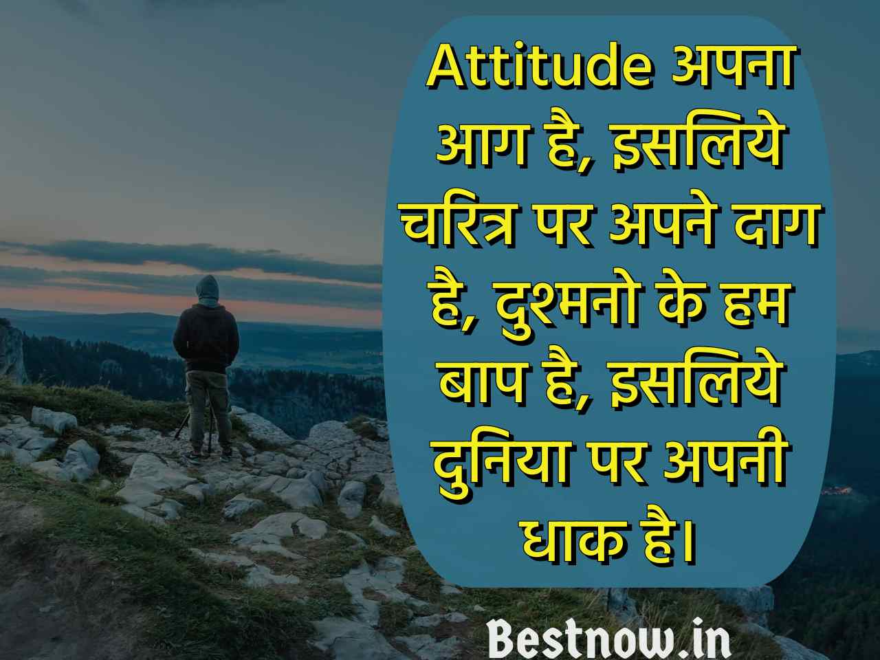 Attitude अपना आग है, इसलिये चरित्र पर अपने दाग है, दुश्मनो के हम बाप है, इसलिये दुनिया पर अपनी धाक है।