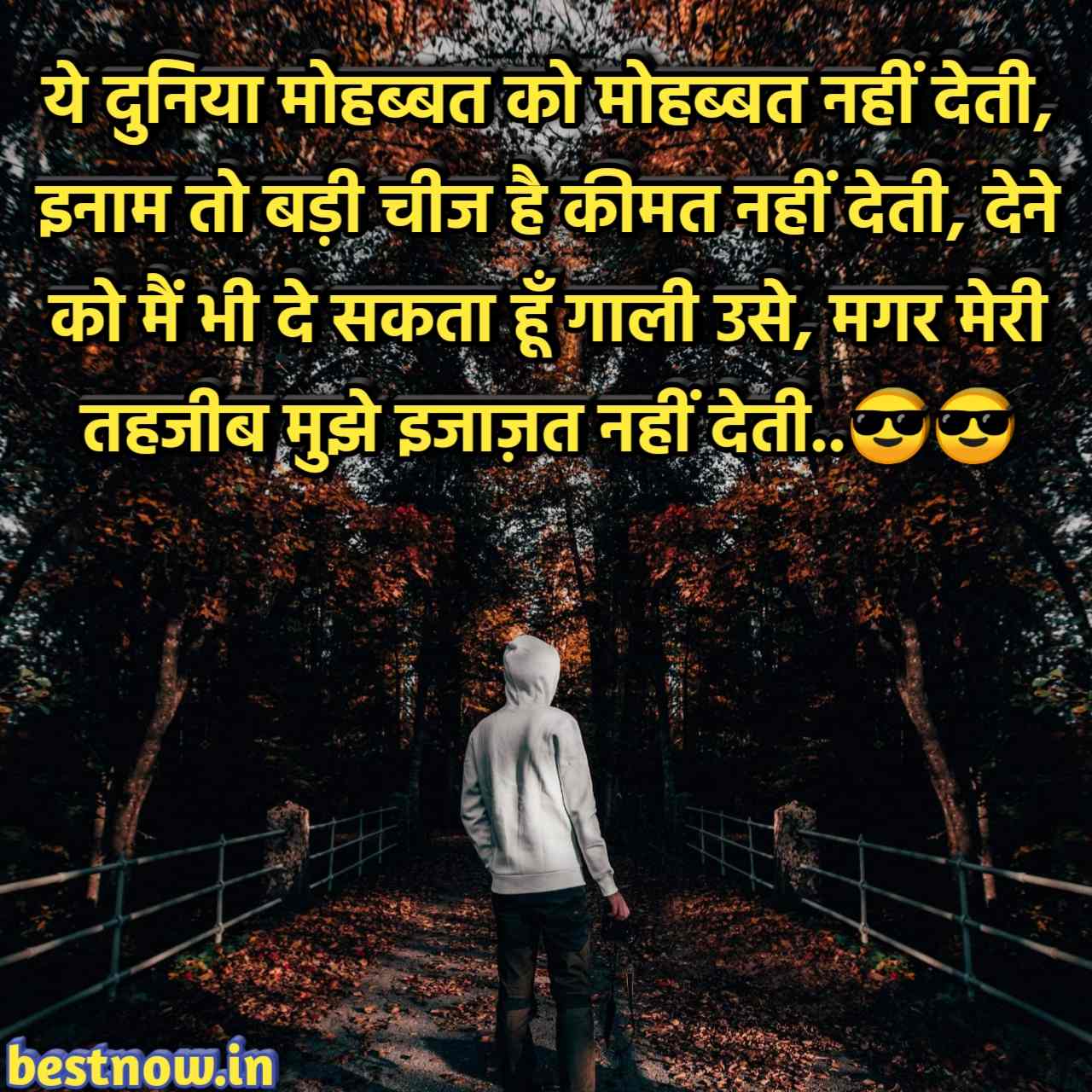 ये दुनिया मोहब्बत को मोहब्बत नहीं देती, इनाम तो बड़ी चीज है कीमत नहीं देती, देने को मैं भी दे सकता हूँ गाली उसे, मगर मेरी तहजीब मुझे इजाज़त नहीं देती..??