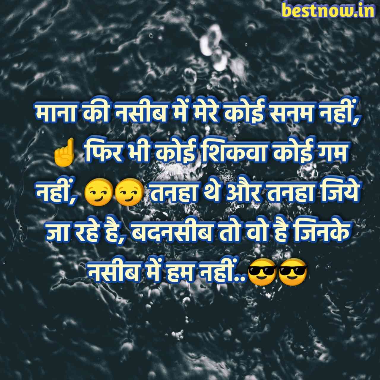माना की नसीब में मेरे कोई सनम नहीं,☝️ फिर भी कोई शिकवा कोई गम नहीं, ?? तनहा थे और तनहा जिये जा रहे है, बदनसीब तो वो है जिनके नसीब में हम नहीं..??