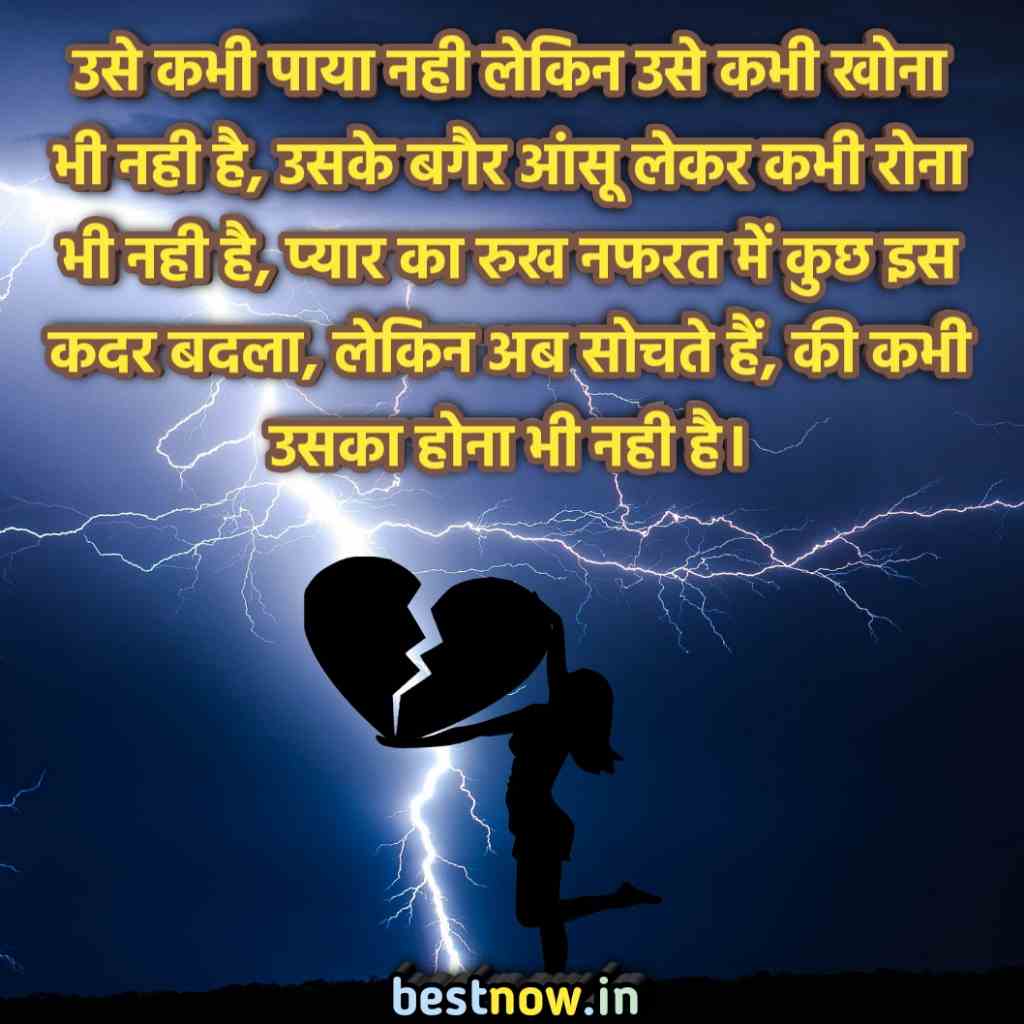 उसे कभी पाया नही लेकिन उसे कभी खोना भी नही है, उसके बगैर आंसू लेकर कभी रोना भी नही है, प्यार का रुख नफरत में कुछ इस कदर बदला, लेकिन अब सोचते हैं, की कभी उसका होना भी नही है।