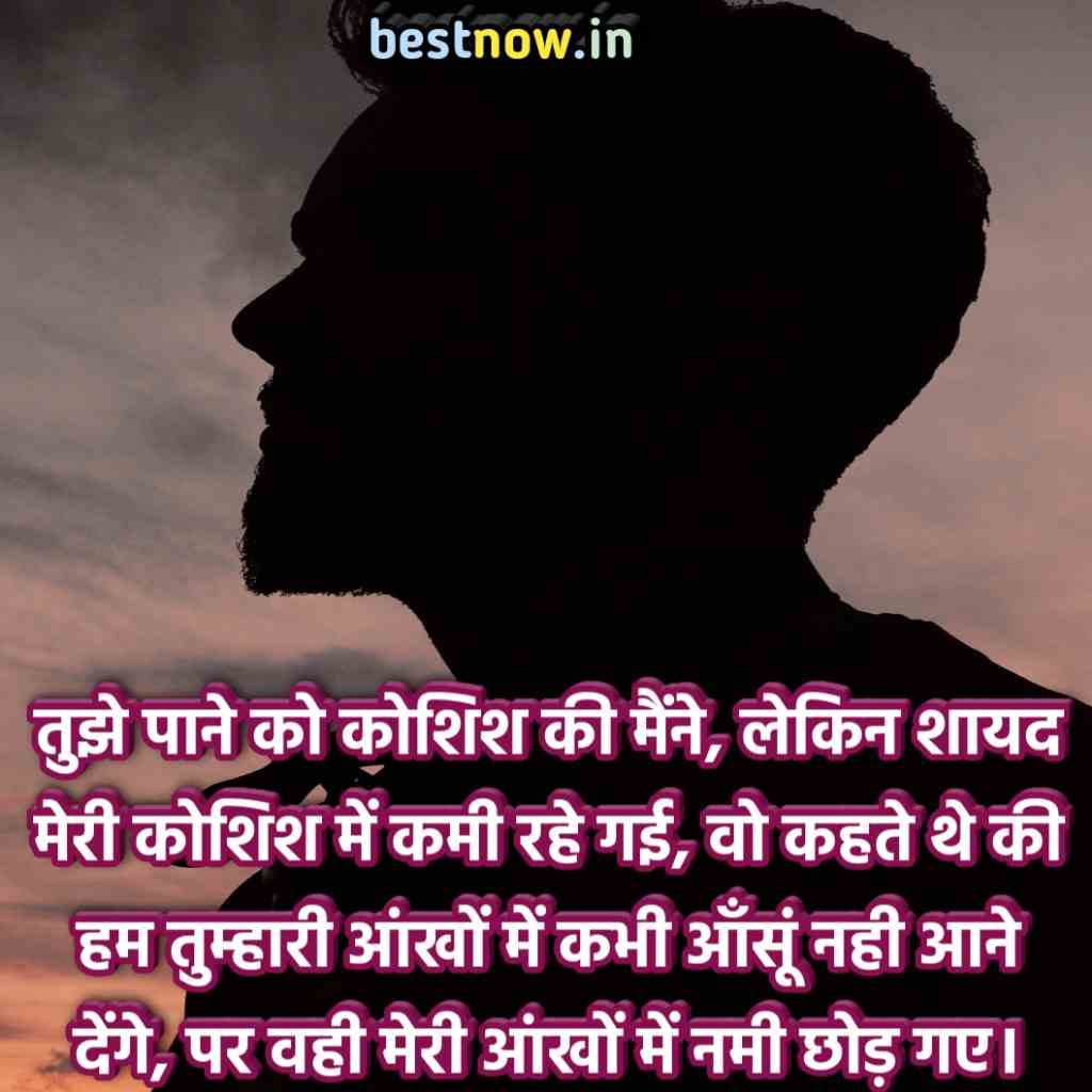 तुझे पाने को कोशिश की मैंने, लेकिन शायद मेरी कोशिश में कमी रहे गई, वो कहते थे की हम तुम्हारी आंखों में कभी आँसूं नही आने देंगे, पर वही मेरी आंखों में नमी छोड़ गए।