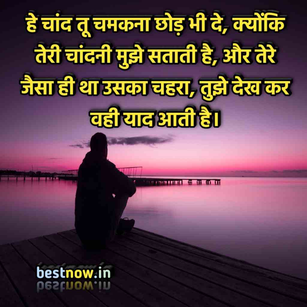 हे चांद तू चमकना छोड़ भी दे, क्योंकि तेरी चांदनी मुझे सताती है, और तेरे जैसा ही था उसका चहरा, तुझे देख कर वही याद आती है।
