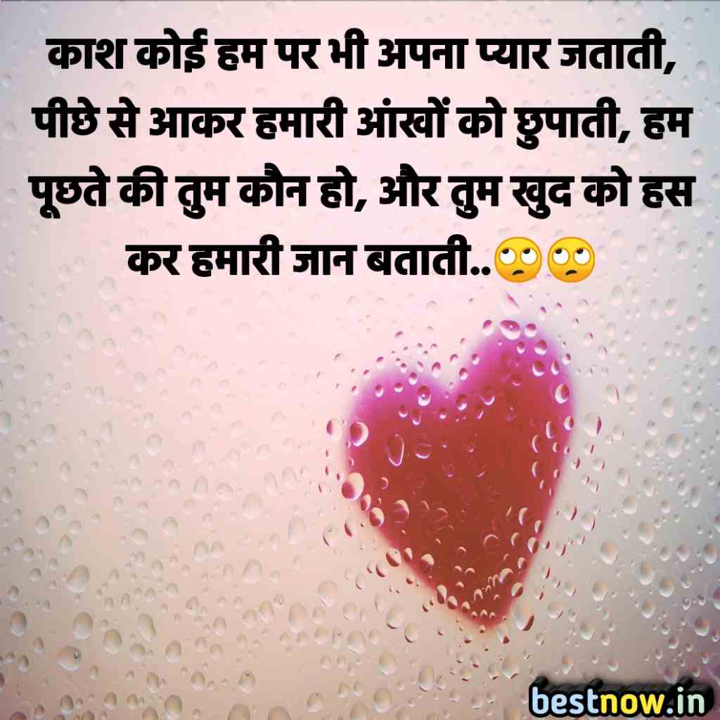 काश कोई हम पर भी अपना प्यार जताती, पीछे से आकर हमारी आंखों को छुपाती, हम पूछते की तुम कौन हो, और तुम खुद को हस कर हमारी जान बताती..