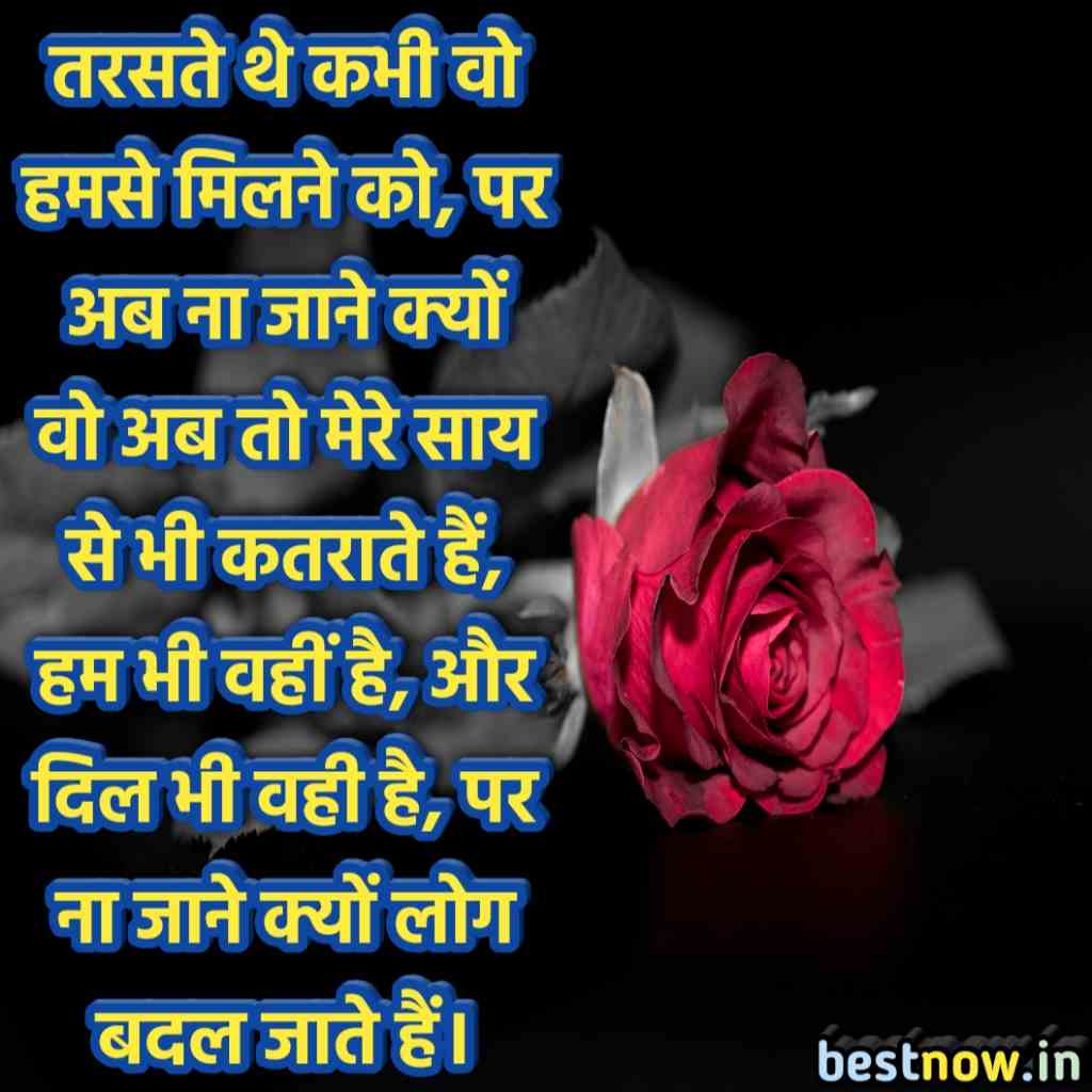 तरसते थे कभी वो हमसे मिलने को, पर अब ना जाने क्यों वो अब तो मेरे साय से भी कतराते हैं, हम भी वहीं है, और दिल भी वही है, पर ना जाने क्यों लोग बदल जाते हैं।