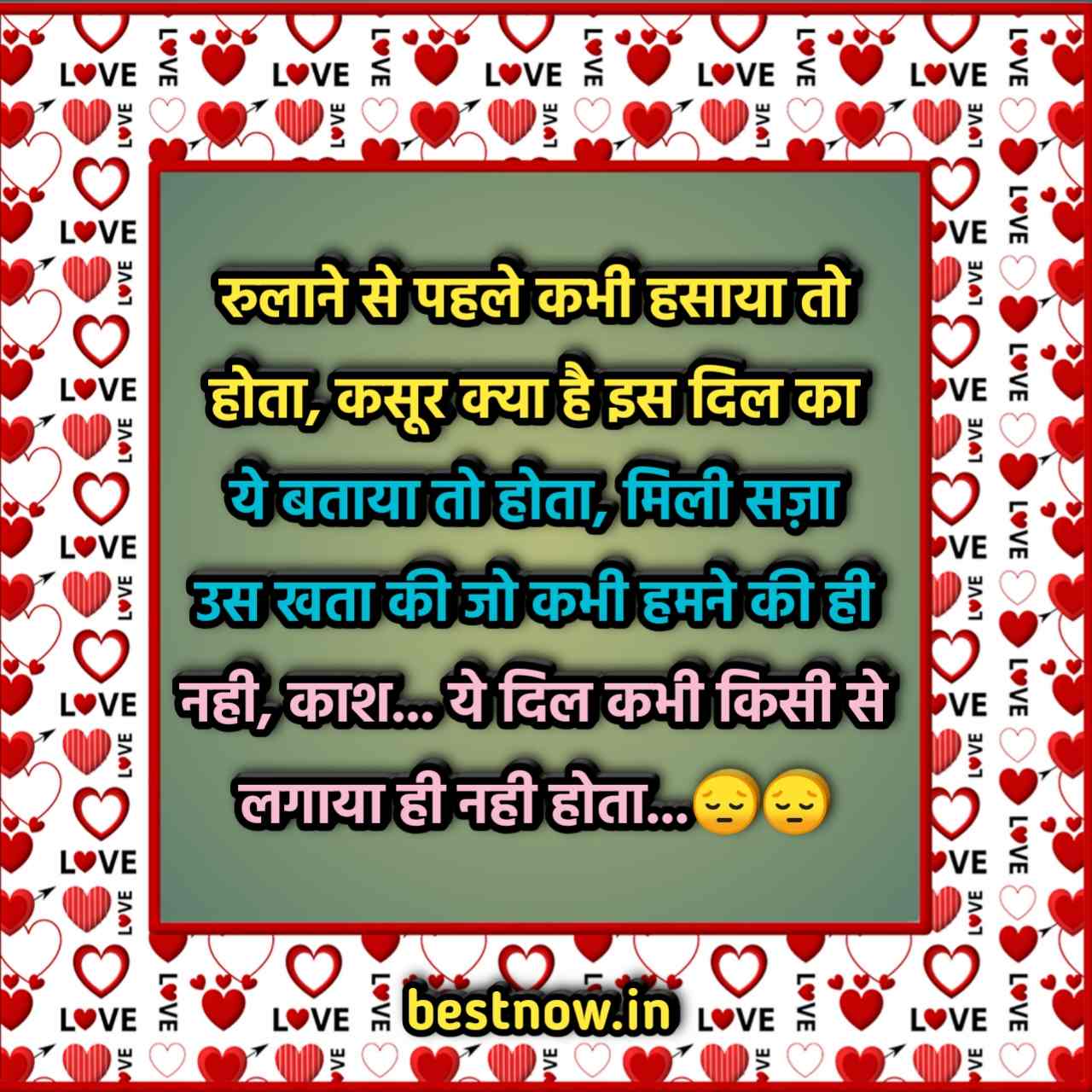 रुलाने से पहले कभी हसाया तो होता, कसूर क्या है इस दिल का ये बताया तो होता, मिली सज़ा उस खता की जो कभी हमने की ही नही, काश… ये दिल कभी किसी से लगाया ही नही होता…
