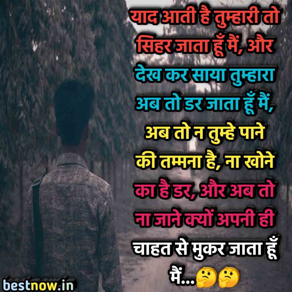 याद आती है तुम्हारी तो सिहर जाता हूँ मैं, और देख कर साया तुम्हारा अब तो डर जाता हूँ मैं, अब तो न तुम्हे पाने की तम्मना है, ना खोने का है डर, और अब तो ना जाने क्यों अपनी ही चाहत से मुकर जाता हूँ मैं…