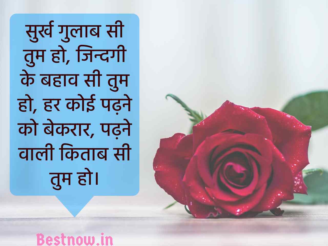 सुर्ख गुलाब सी तुम हो, जिन्दगी के बहाव सी तुम हो, हर कोई पढ़ने को बेकरार, पढ़ने वाली किताब सी तुम हो।