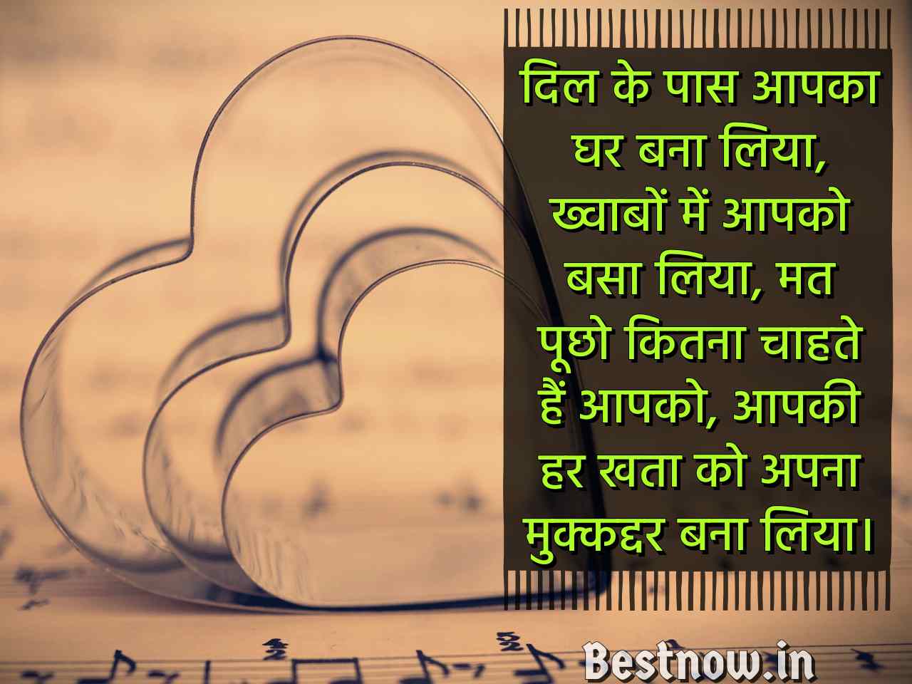 दिल के पास आपका घर बना लिया, ख्वाबों में आपको बसा लिया, मत पूछो कितना चाहते हैं आपको, आपकी हर खता को अपना मुक्कद्दर बना लिया।