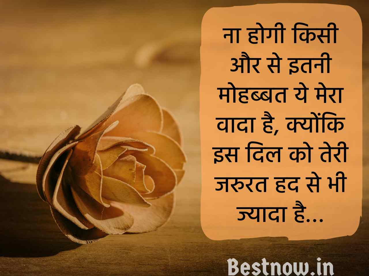 ना होगी किसी और से इतनी मोहब्बत ये मेरा वादा है, क्योंकि इस दिल को तेरी जरुरत हद से भी ज्यादा है।