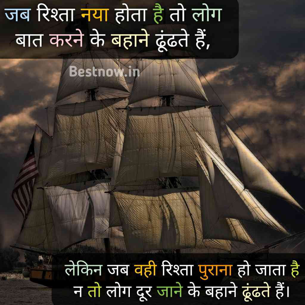 जब रिश्ता नया होता है तो लोग बात करने के बहाने ढूंढते हैं, लेकिन जब वही रिश्ता पुराना हो जाता है न तो लोग दूर जाने के बहाने ढूंढते हैं।