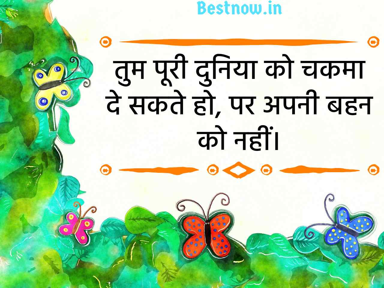 बारिश की बूंद की तरह है मेरी बहना, जो खुद बिखर कर घर को सजाती है, वो आती है तो घर में नए रंग भर जाती है, और मेरे दिल को खुशियों से भर जाती है।