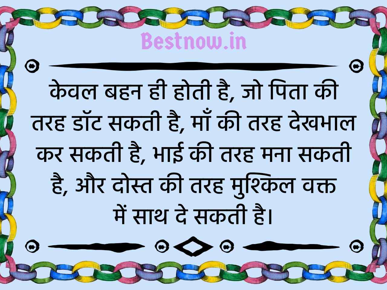 केवल बहन ही होती है, जो पिता की तरह डॉट सकती है, माँ की तरह देखभाल कर सकती है, भाई की तरह मना सकती है, और दोस्त की तरह मुश्किल वक्त में साथ दे सकती है।