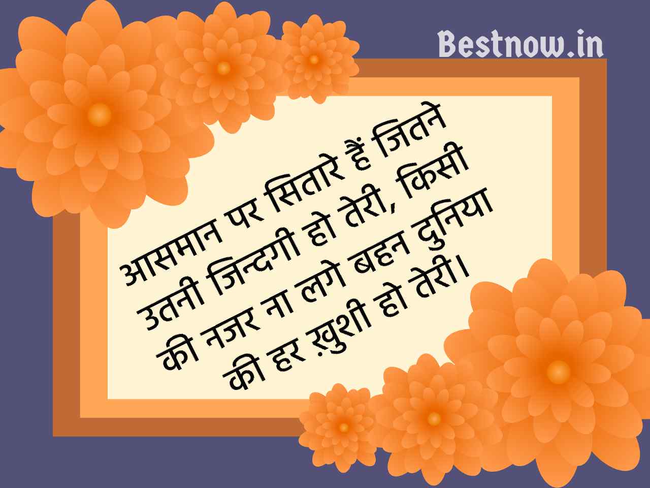 आसमान पर सितारे हैं जितने उतनी जिन्दगी हो तेरी, किसी की नजर ना लगे बहन दुनिया की हर ख़ुशी हो तेरी।