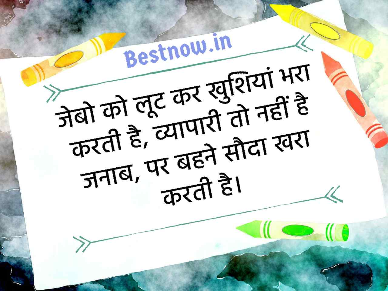 जेबो को लूट कर खुशियां भरा करती है, व्यापारी तो नहीं है जनाब, पर बहने सौदा खरा करती है।