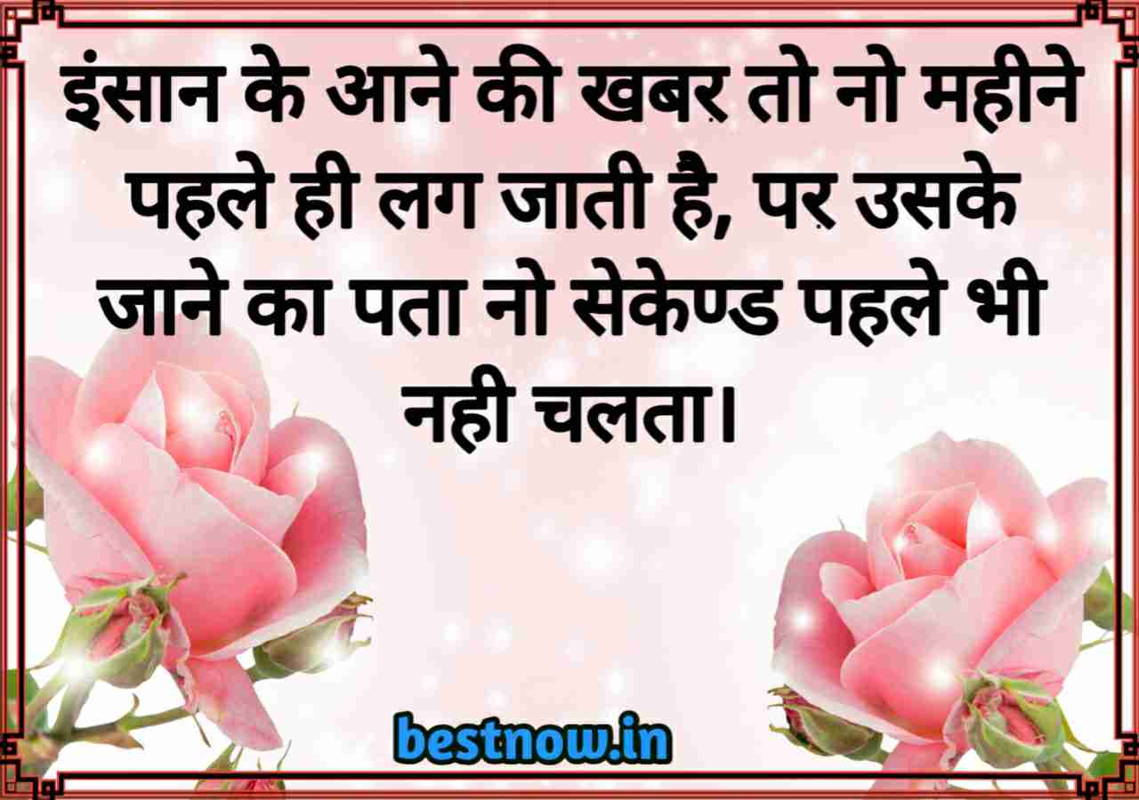 इंसान के आने की खबर तो नो महीने पहले ही लग जाती है, पर उसके जाने का पता नो सेकेण्ड पहले भी नही चलता।