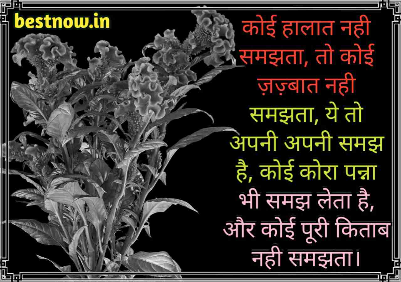 कोई हालात नही समझता, तो कोई ज़ज़्बात नही समझता, ये तो अपनी अपनी समझ है, कोई कोरा पन्ना भी समझ लेता है, और कोई पूरी किताब नही समझता।