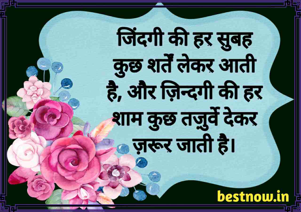 जिंदगी की हर सुबह कुछ शर्तें लेकर आती है, और ज़िन्दगी की हर शाम कुछ तज़ुर्वे देकर ज़रूर जाती है।