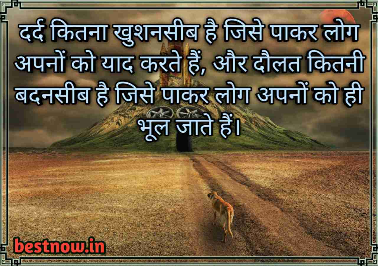 दर्द कितना खुशनसीब है जिसे पाकर लोग अपनों को याद करते हैं, और दौलत कितनी बदनसीब है जिसे पाकर लोग अपनों को ही भूल जाते हैं।
