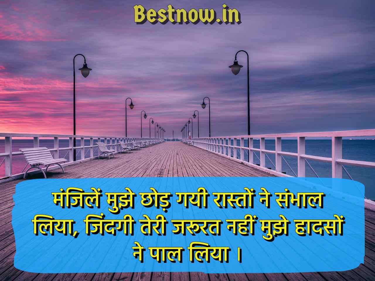 मंजिलें मुझे छोड़ गयी रास्तों ने संभाल लिया, जिंदगी तेरी जरूरत नहीं मुझे हादसों ने पाल लिया ।
