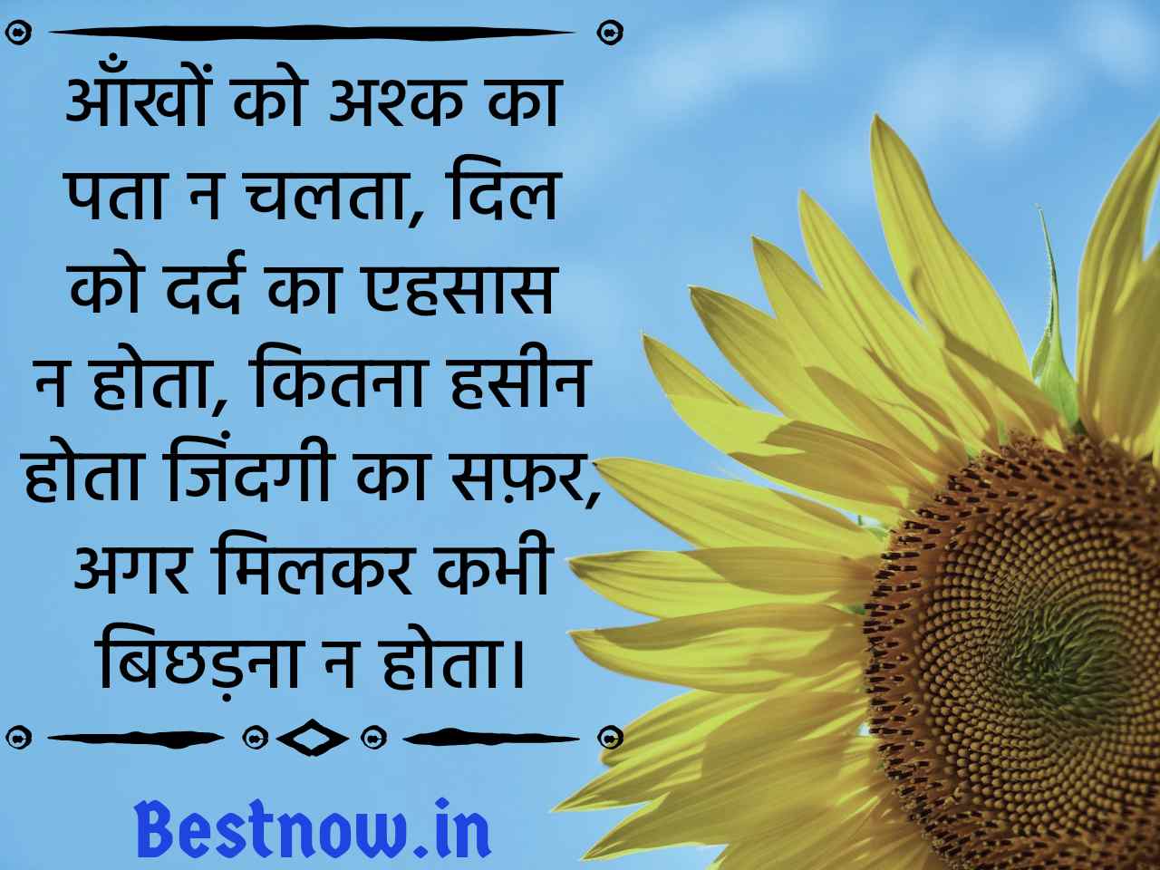 आँखों को अश्क का पता न चलता, दिल को दर्द का एहसास न होता, कितना हसीन होता जिंदगी का सफ़र, अगर मिलकर कभी बिछड़ना न होता।