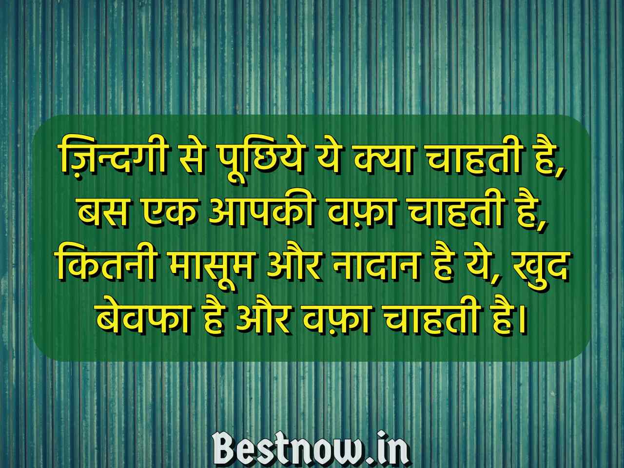 ज़िन्दगी से पूछिये ये क्या चाहती है, बस एक आपकी वफ़ा चाहती है, कितनी मासूम और नादान है ये, खुद बेवफा है और वफ़ा चाहती है।