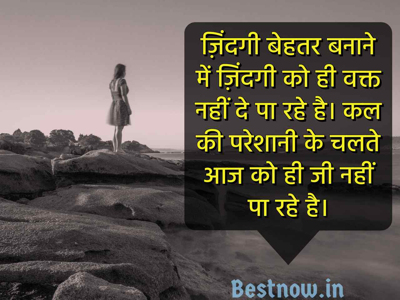 ज़िंदगी बेहतर बनाने में ज़िंदगी को ही वक्त नहीं दे पा रहे है। कल की परेशानी के चलते आज को ही जी नहीं पा रहे है।